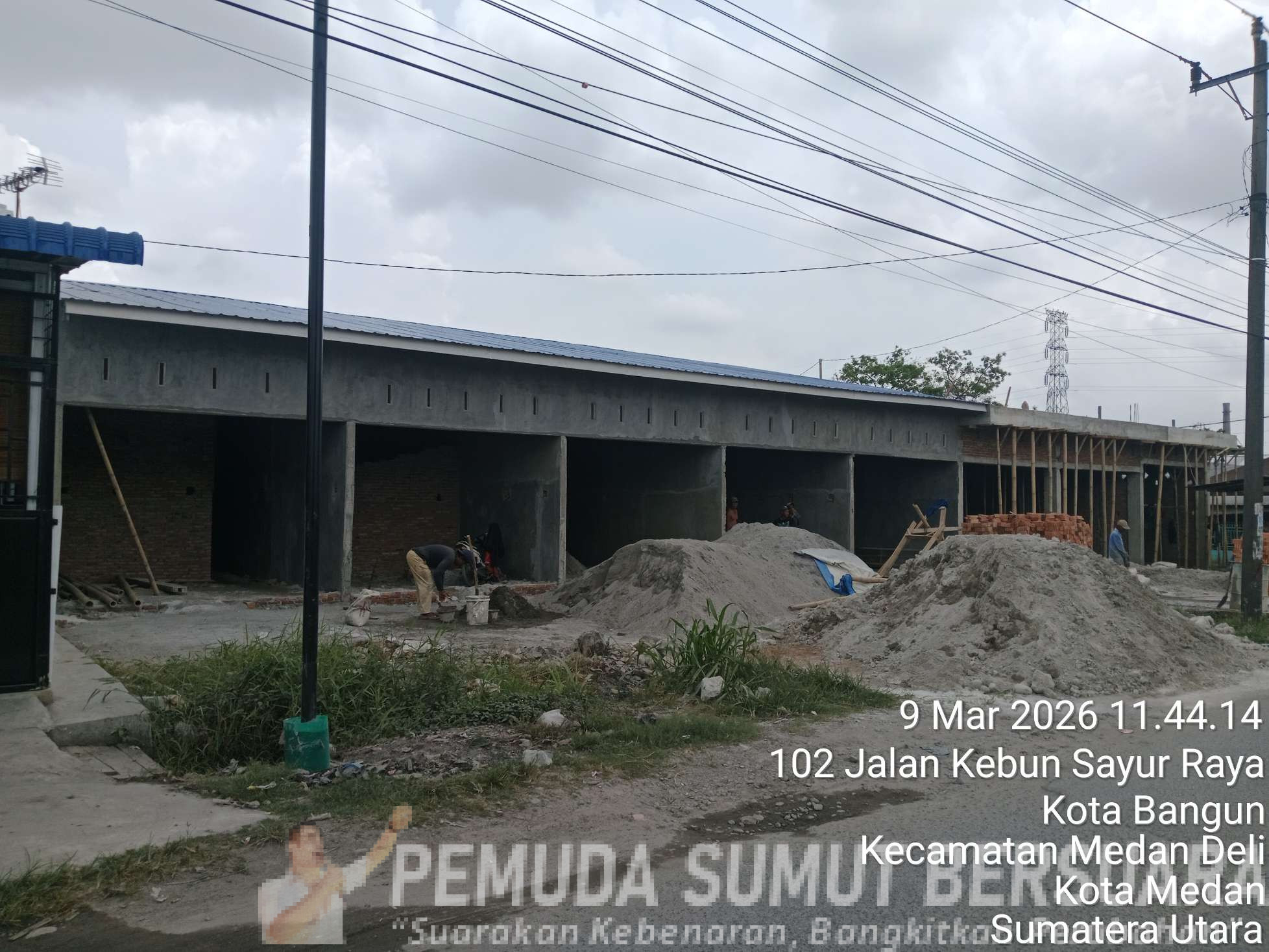 Sebagaimana pantauan langsung Media di jalan Kebun Sayur Raya Kelurahan Kota Bangun Kecamatan Medan Deli. Dimana terlihat jelas bangunan sudah hampir 70% rampung.