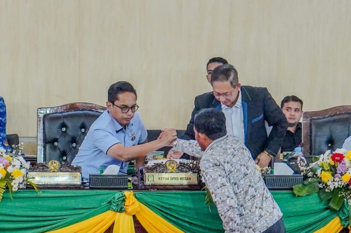 “Ini juga cerminan otonomi daerah yang luas dan bertanggung jawab,” kata Rico Waas dalam Rapat Paripurna Penyampaian Laporan Badan Anggaran dan Penyampaian Pendapat Fraksi-Fraksi DPRD Medan di Gedung DPRD Medan, Selasa (01/07/2025).