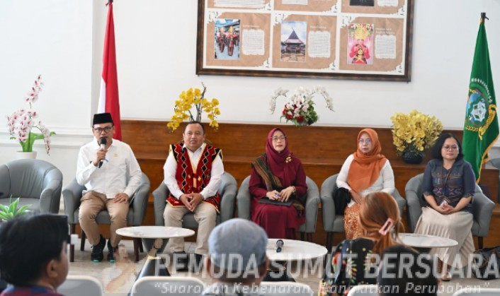 Kepala Badan Pusat Statistik (BPS) Sumut Asim Saputra pada Temu Pers dengan tema “Sensus Ekonomi Sumatera Utara”, yang difasilitasi Dinas Kominfo Sumut berlangsung di Lobby Dekranasda Lantai 1 Kantor Gubernur Sumut Jalan Diponengoro Nomor 30 Medan, Kamis (12/03/2026).(Foto : Ist)