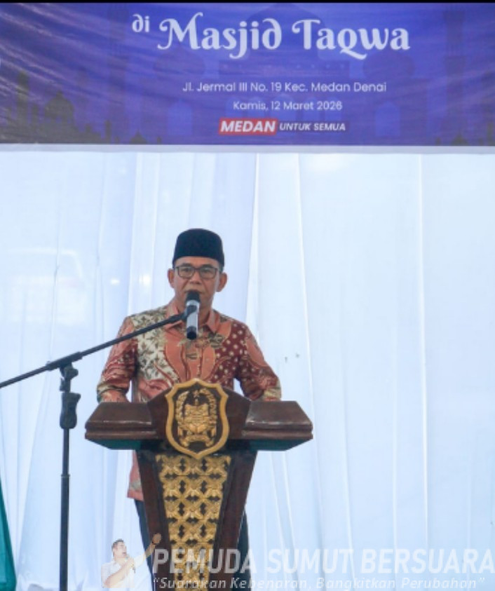 Wakil Wali Kota Medan, H. Zakiyuddin Harahap membawa pesan mendalam saat berlangsungnya acara Safari Ramadan Pemko Medan di Masjid Taqwa, jalan Jermal III, Kecamatan Medan Denai, Kamis (12/03/2026).