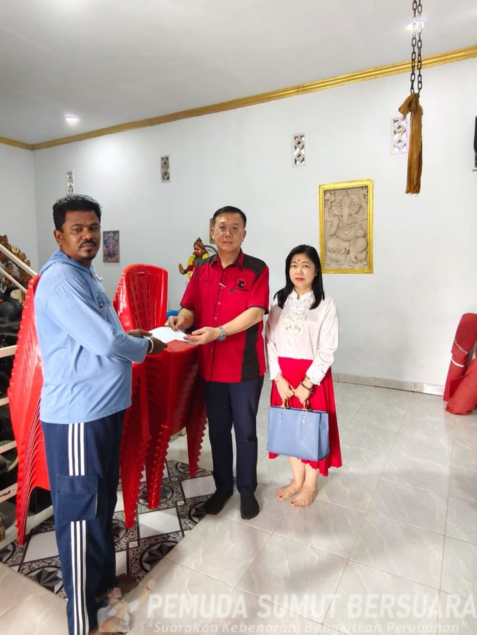 Sebagai wujud nyata kepedulian sosial, DPC PDI Perjuangan Kota Medan bersama Hasyim didampingi isteri tercintanya, Lindawati menyalurkan bantuan berupa kursi dan uang tunai kepada umat Hindu di Shri Singamakali Kuil, Tembung. Bantuan ini diberikan dalam rangka menyambut perayaan Hari Raya Deepawali.