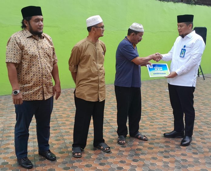 Menjelang Hari Raya Idul Adha 1446 H, Perusahaan Umum Daerah (Perumda) Tirtanadi Sumatera Utara menyerahkan 12 ekor hewan qurban kepada nazir masjid yang berada di sekitar Instalasi Pengolahan Air Minum (IPAM) dan Instalasi Pengolahan Air Limbah (IPAL) Tirtanadi, Kamis (05/06/2025).