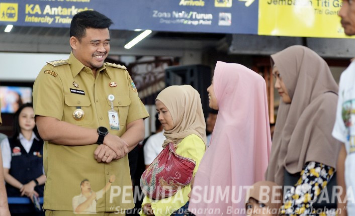 Gubernur Sumatera Utara (Sumut) Muhammad Bobby Afif Nasution melepas lebih dari 6.500 peserta program Mudik Gratis Idulfitri yang diselenggarakan Pemerintah Provinsi (Pemprov) Sumut. Pelepasan dilakukan secara simbolis di Stasiun Besar Kereta Api Medan, Jalan Kereta Api, Medan, Senin (16/03/2026).