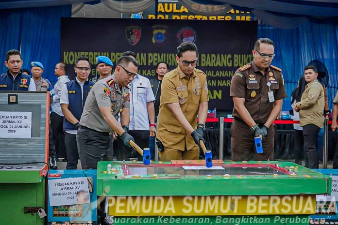 Dalam konferensi pers dan pemusnahan barang bukti di Lapangan Polrestabes Medan, Senin (13/4/2026), Rico Waas menyebut pengungkapan kasus yang terus berulang menjadi bukti nyata ancaman serius yang dihadapi Kota Medan.