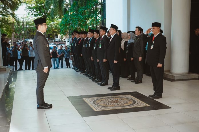 Wali Kota Medan Rico Tri Putra Bayu Waas memimpin upacara Peringatan Hari Lahir Pancasila tahun 2025 di Kantor Wali Kota Medan, Senin (02/06/2025).