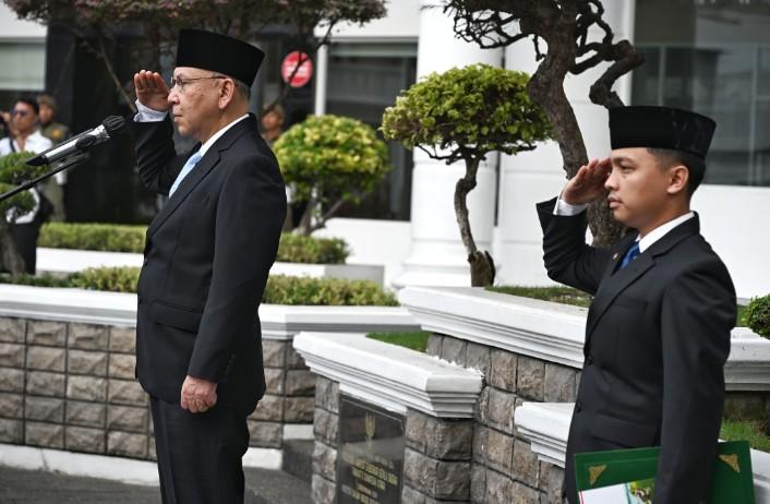 Upacara peringatan Hari Kebangkitan Nasional yang bertemakan “Menuju Kebangkitan Nasional yang Bersahaja, Berpihak dan Berkelanjutan” dihadiri para asisten dan staf ahli gubernur, pimpinan OPD dan ASN di lingkungan Pemprov Sumut. (Alian/Rel)