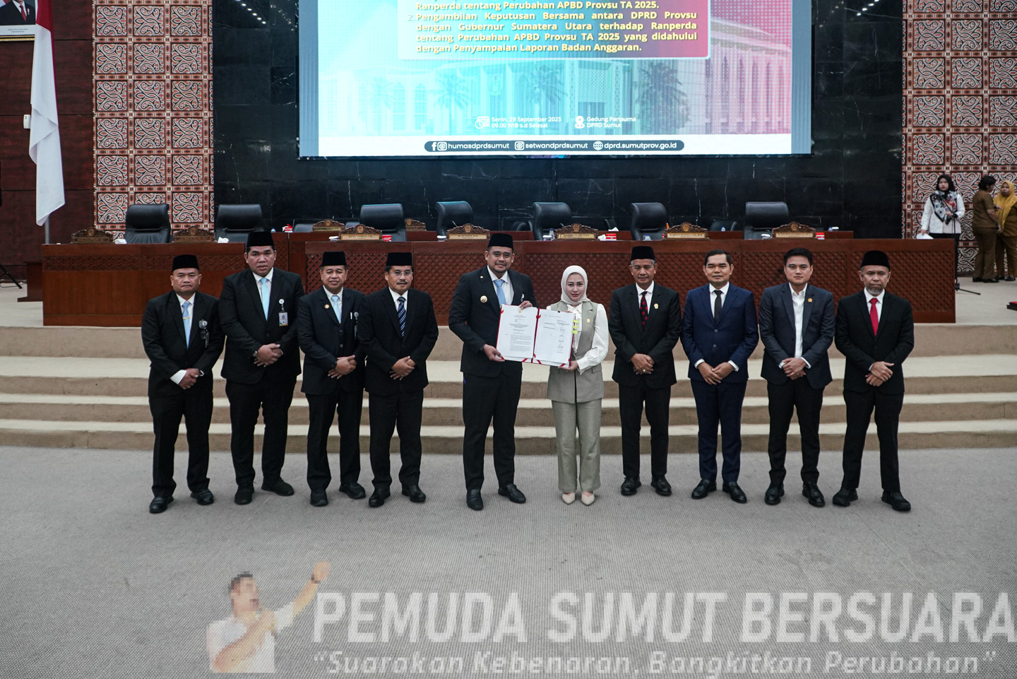 Rancangan Peraturan Daerah (Ranperda) tentang Perubahan Anggaran Pendapatan dan Belanja Daerah (P-APBD) Provinsi Sumatera Utara (Sumut) Tahun Anggaran 2025, disetujui. Hal tersebut berlangsung dalam Rapat Paripurna DPRD Sumut, di Gedung Dewan, Jalan Imam Bonjol Nomor 5, Medan, Senin (29/9/2025).
