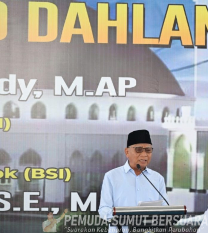 Wakil Gubernur Sumatera Utara (Sumut) Surya menghadiri peresmian pembangunan Masjid KH Ahmad Dahlan Universitas Muhammadiyah Sumatera Utara (UMSU) yang ditandai dengan peletakan batu pertama di Kampus Terpadu, Jalan Dwikora, Pasar IV, Desa Saentis, Kecamatan Percut Seituan, Kabupaten Deliserdang, Sabtu (28/2/2026). Pada kesempatan tersebut, Surya menegaskan pentingnya sinergi antara kampus dan masjid sebagai pusat pengembangan ilmu dan pembinaan karakter generasi muda.