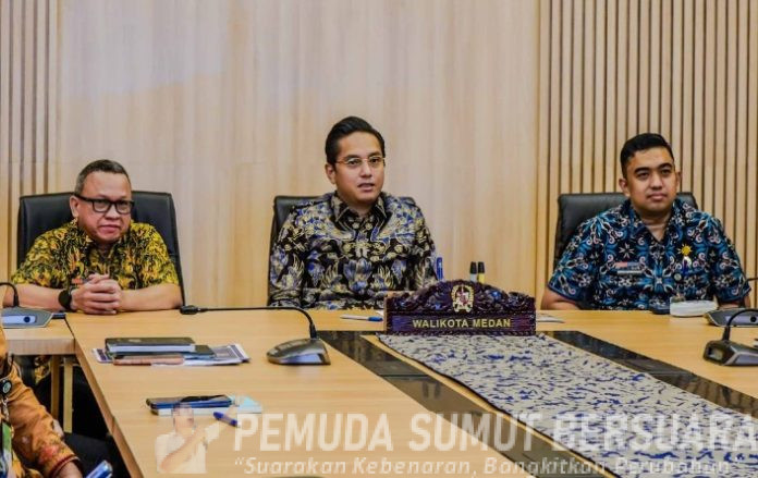 Wali Kota Medan Rico Tri Putra Bayu Waas mengikuti secara daring Entry Meeting Serentak Pemeriksaan Interim Laporan Keuangan Pemerintah Daerah se-Sumatera Utara Tahun 2025, Kamis (19/2/2026), dari rumah dinas wali kota.