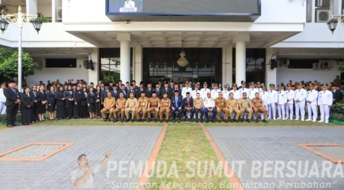 “Siap!”sambut teriakan secara serempak dari seluruh pejabat yang dilantik seolah memecah ketenangan halaman Balai Kota Medan.