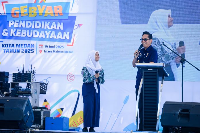 Gebyar Pendidikan dan Kebudayaan yang digelar Pemko Medan di halaman Istana Maimun, Kamis (19/06/2025), berlangsung meriah dan seru. Selain diisi dengan berbagai pertunjukan kreasi, dalam kegiatan ini diserahkan juga ijazah kepada pelajar yang kurang mampu program tebus Ijazah dan launching Regrouping Sekolah.