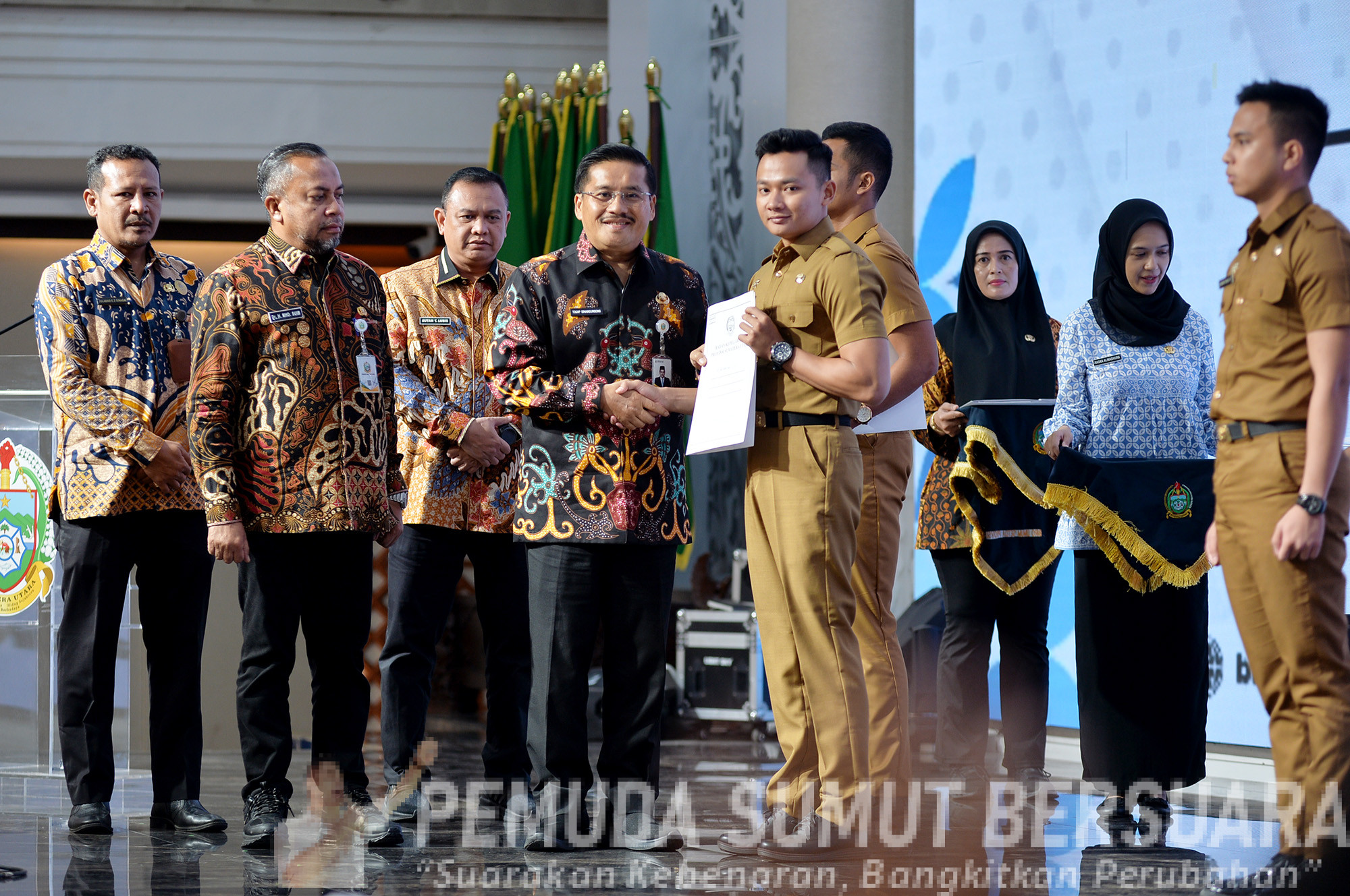 Sekretaris Daerah Provinsi (Sekdaprov) Sumatera Utara (Sumut) Togap Simangunsong menyerahkan 64 Surat Keputusan (SK) Calon Pegawai Negeri Sipil (CPNS) lulusan Institut Pemerintahan Dalam Negeri (IPDN). Penyerahan SK tersebut sekaligus penempatan tugas para lulusan IPDN, yang tersebar di 33 kabupaten/kota di Provinsi Sumut.