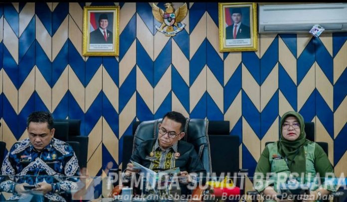 Wakil Wali Kota Medan H. Zakiyuddin Harahap menghadiri Rapat Koordinasi Tingkat Menteri Satgas Rehabilitasi dan Rekonstruksi Pascabencana di Provinsi Aceh, Provinsi Sumatera Utara, Provinsi Sumatera Barat, Jumat (27/2/2026) secara daring dari Ruang Command Center Kantor Wali Kota Medan.